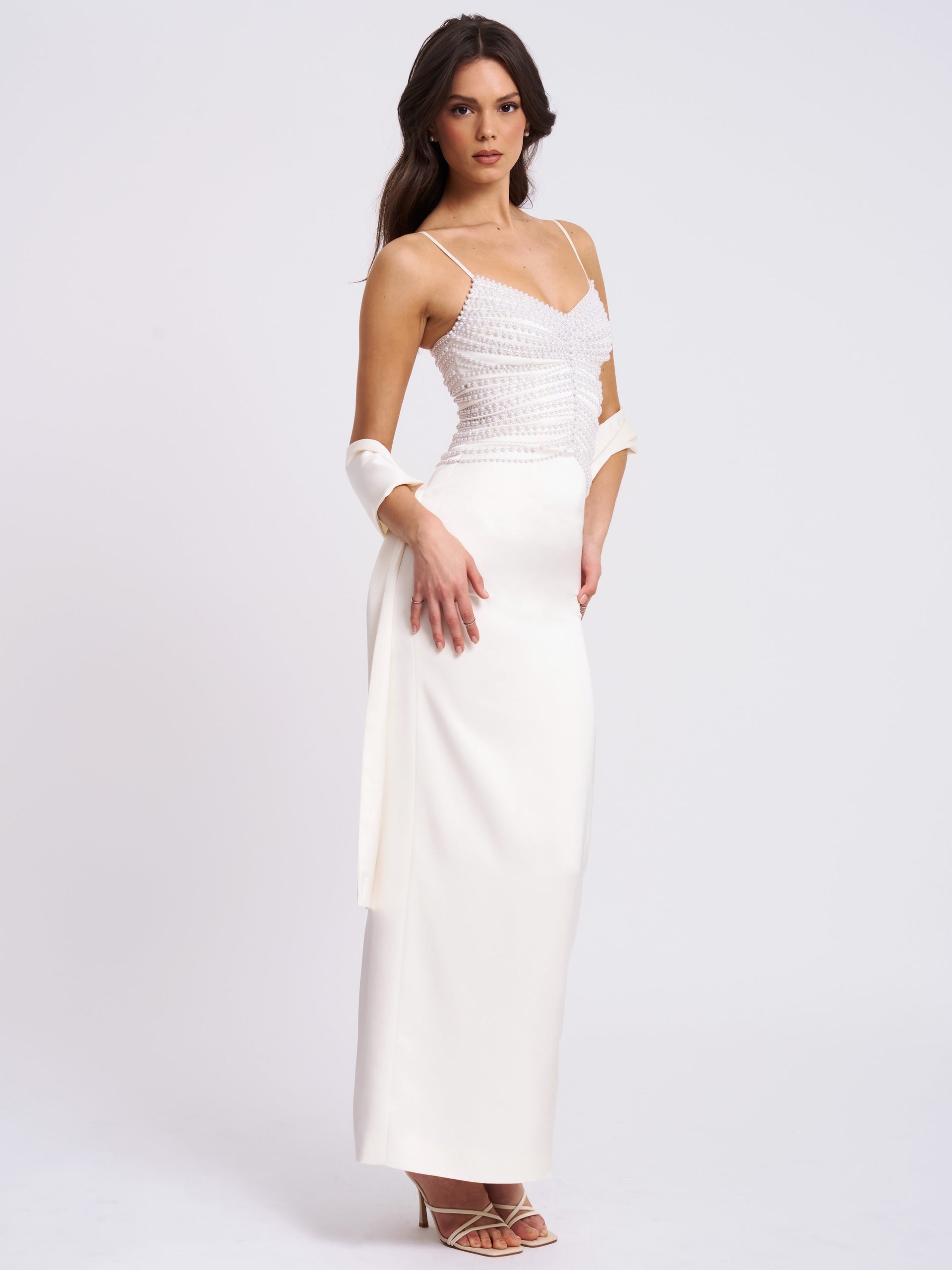 Karmen Pearl Top Pencil Slip Gown with Scarf