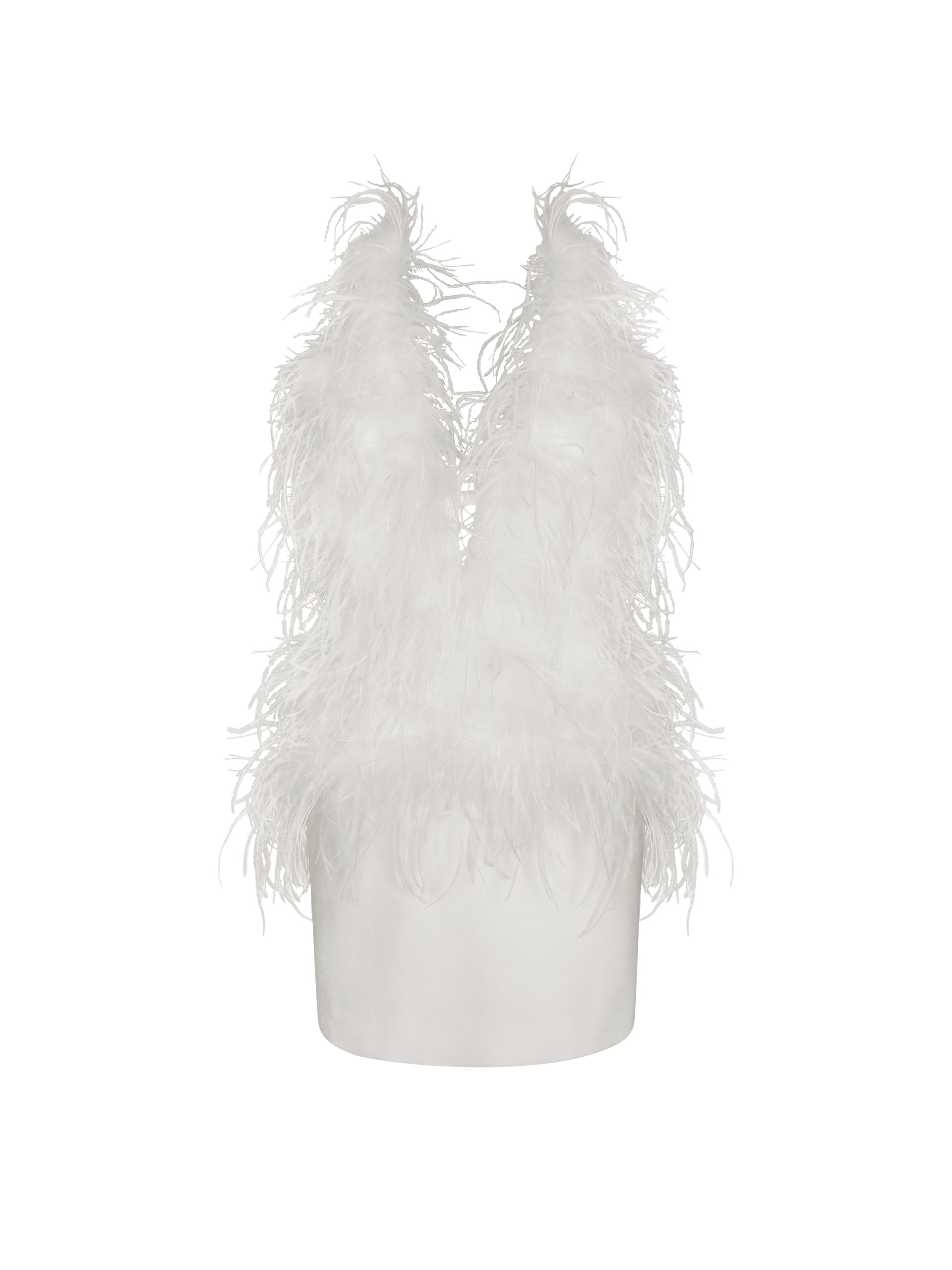 Turn heads the moment you walk in with our Quisten White Feathered Halter Mini Dress—a statement of modern allure and timeless glamour. Designed with a plunging keyhole V-neckline secured by dainty shank buttons at the back of the neck, this halter style ties elegantly to ensure a perfect fit while showcasing a captivating backless silhouette. The fitted crepe skirt hugs every curve, while soft feather detailing adds a touch of playful sophistication. Fully lined in smooth satin and finished with an invisible back zipper, it’s the ideal blend of comfort and couture. Perfect for candlelit dinners, rooftop soirées, or festive gatherings where all eyes are drawn to the one who sparkles most.