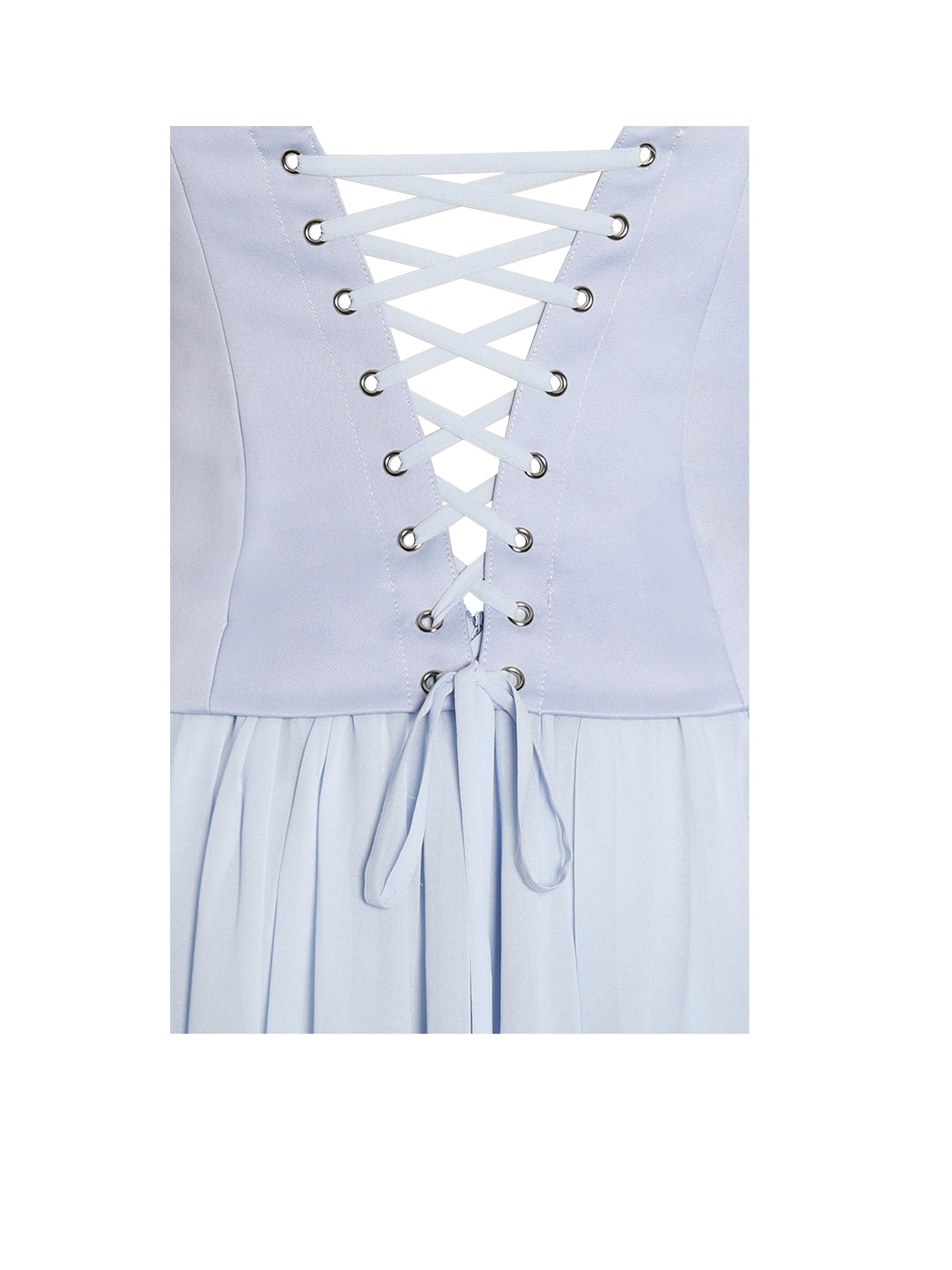Designed for timeless elegance, the Qianna Dress is the perfect choice for weddings, engagements, formal events, summer soirées, and birthday celebrations. This breathtaking gown features a strapless peplum top with built-in bones and non-slip straps, ensuring a secure and flattering fit. The lace-up back adds a romantic touch, while the double-layered chiffon skirt flows effortlessly with every step. A high slit adds just the right amount of drama, making it perfect for dancing the night away. The dress is fully lined with an invisible zipper for a seamless finish. To complete the look, a matching chiffon scarf is included, adding an extra layer of sophistication to this dreamy ensemble.