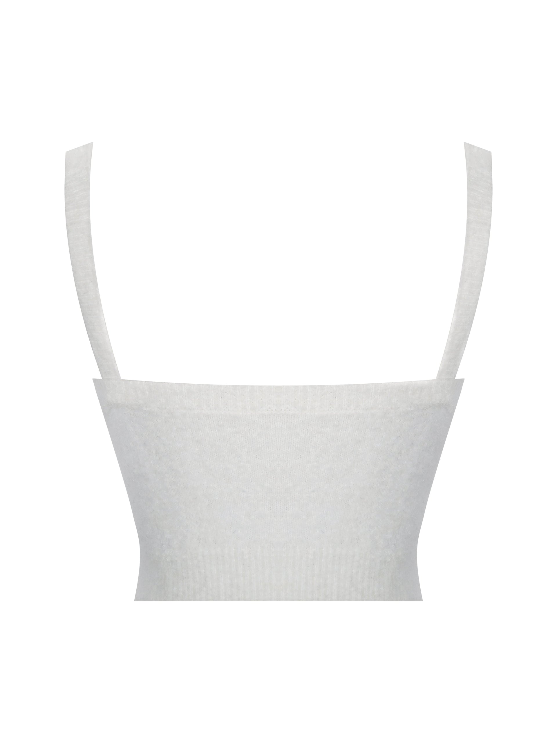Meet the Selene Top, your new après-ski essential. This white cropped knit is spun from a cozy wool blend with a super-soft feel and four-way stretch for comfort that moves with you. Designed with a flattering V-neckline and delicate spaghetti straps, its ribbed structure keeps things sleek while adding just the right amount of texture. Perfect for layering under chunky cardigans at the chalet or pairing with the matching Sera Shorts, Selma Scarf and Orla Cardigan for a coordinated ski-lodge look — this is the piece that makes winter lounging feel effortlessly chic.